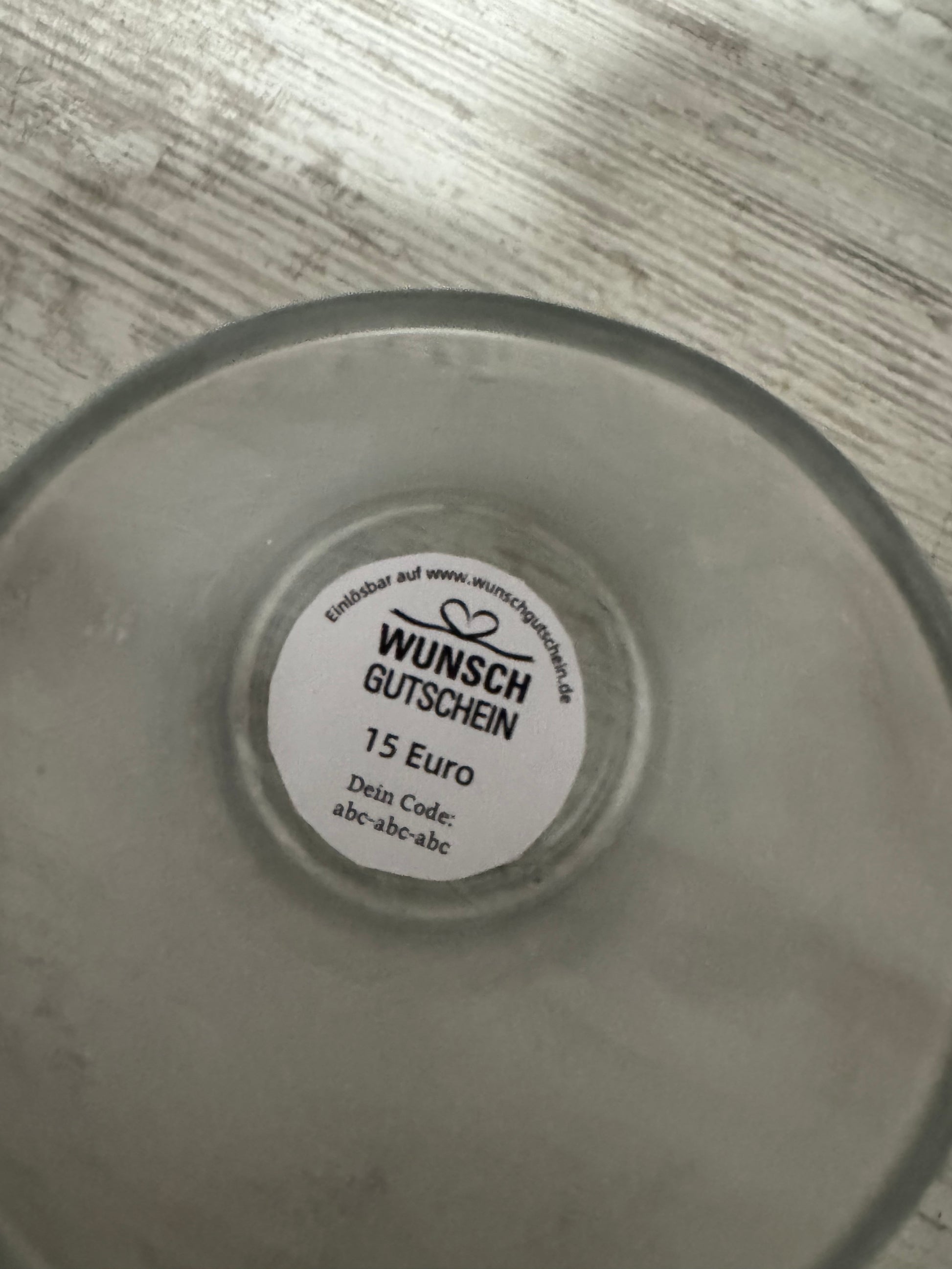 Sobald die Kerze abgebrannt ist und du die Folie samt Docht(en) entfernt hast, kannst du den Gutschein-Code entdecken und dich über Summe X € freuen.