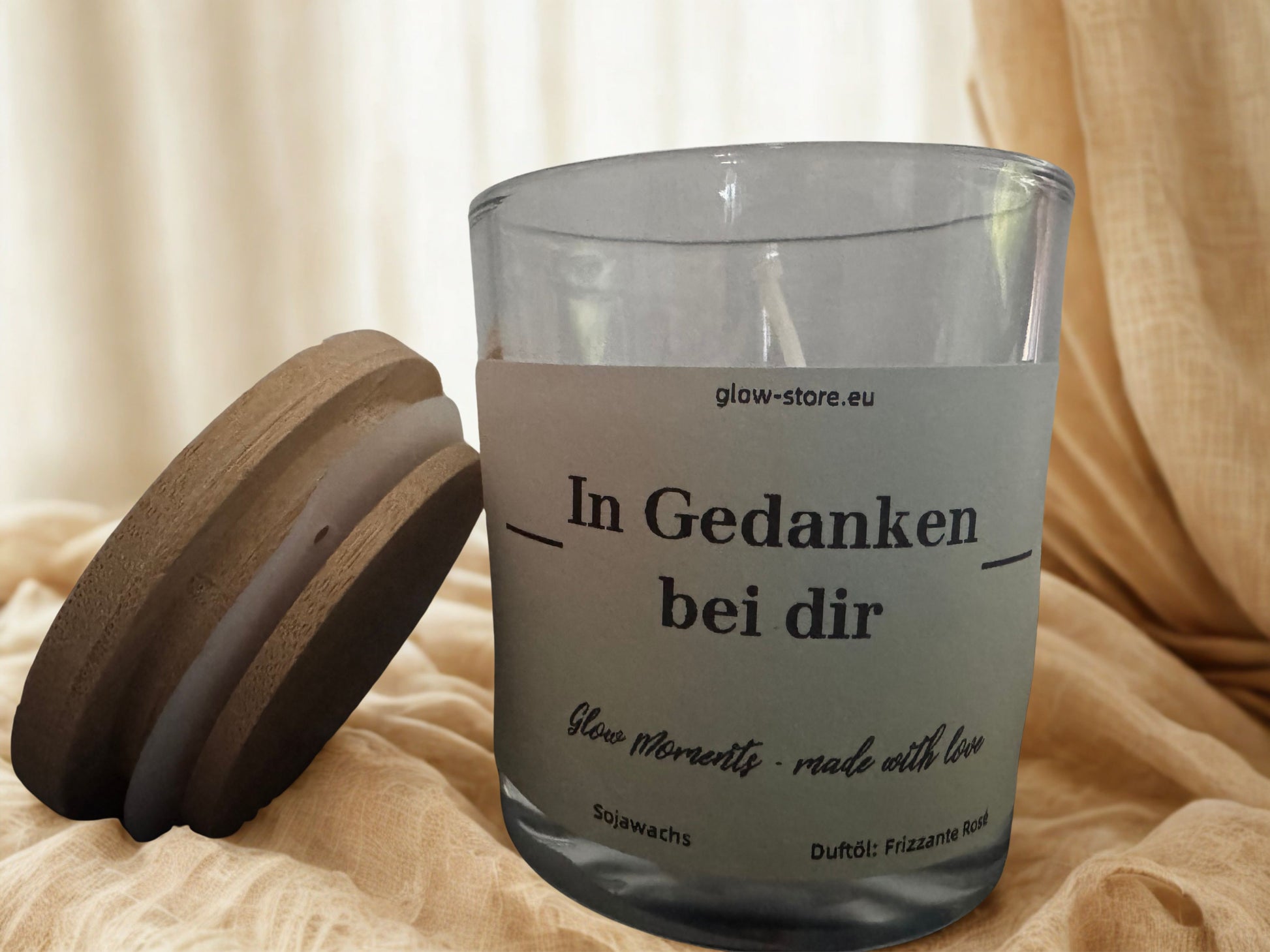 Im 170 ml Glas mit Bambusdeckel wird jede Kerze durch einen besonderen Spruch zum Lichtmoment mit Botschaft – ideal als Geschenk oder für dich selbst.